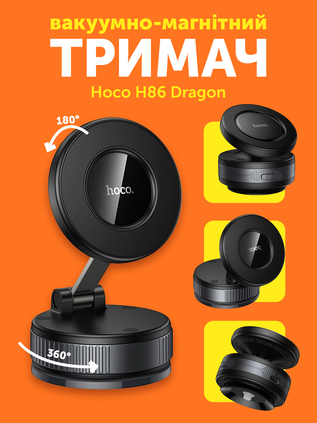 Hoco H86 Dragon manual suction cup magnetic (universal) — это практичный и надёжный держатель для смартфона, который сочетает простоту механического крепления, удобство магнитной фиксации и универсальность в использовании.