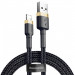 Универсальный дата-кабель от бренда Baseus. Изготовлен по классическому дизайну из высокопрочных материалов. Основная часть выполнена из алюминия. Оплетка из TPU добавляет прочность разъемам, в связи с чем изделие служит дольше и не рвется.