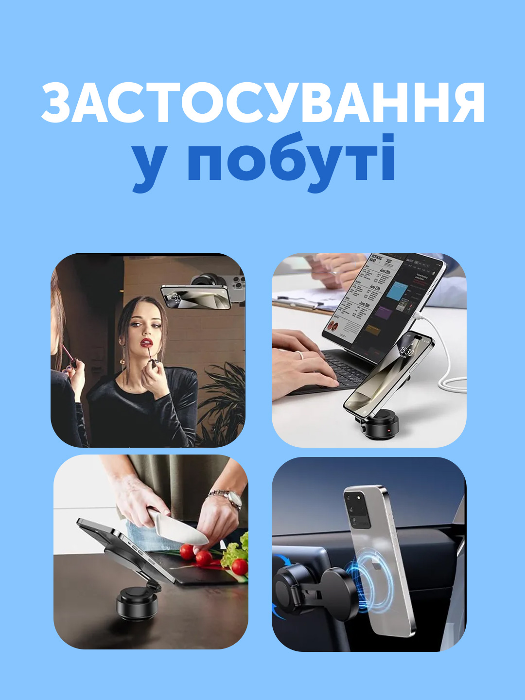 - призначення – фіксація телефону на склі, дзеркалі, панелі, плитці чи іншій гладкій поверхні;