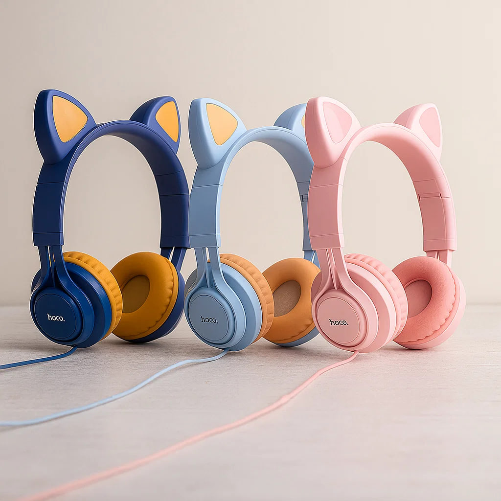 Hoco W36 Cat Ear – це накладні навушники, які складно сплутати з іншими. Їхній яскравий акцент – «котячі вушка» на оголів’ї, що перетворюють звичайний аксесуар на стильний елемент образу. Різноманіття кольорів дозволяє обрати модель під настрій і стиль — для навчання, прогулянок або відпочинку вдома.